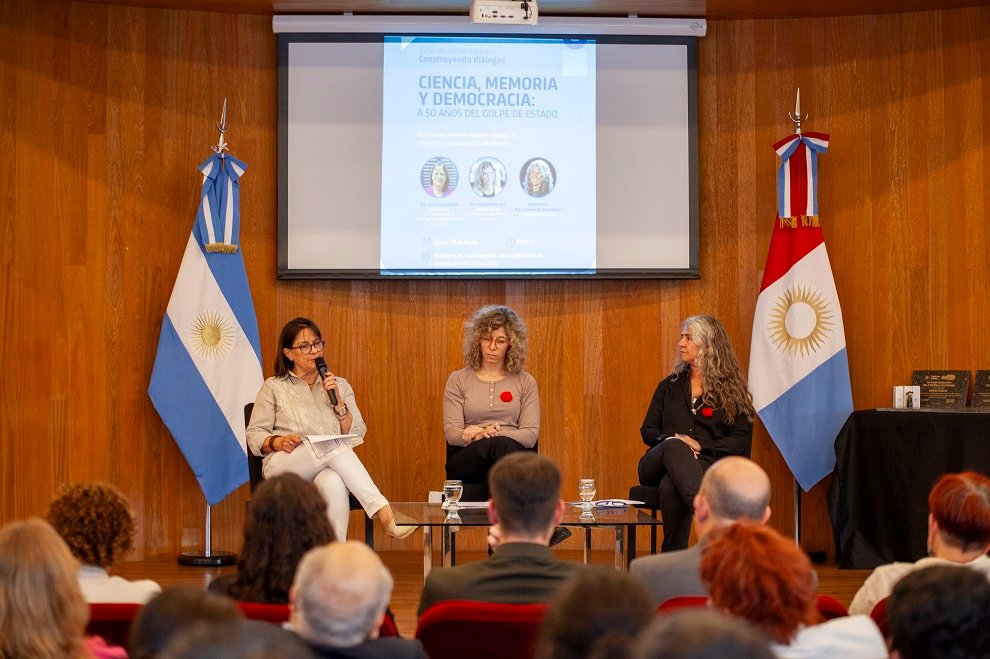 La moderación estuvo a cargo de Ludmila da Silva Catela, investigadora especializada en estudios sobre memoria, violencias y pasado reciente. Como expositoras participaron Celia Basconzuelo y Virginia Morales, quienes abordaron distintas perspectivas vinculadas al período de la última dictadura militar y su impacto en la construcción democrática.