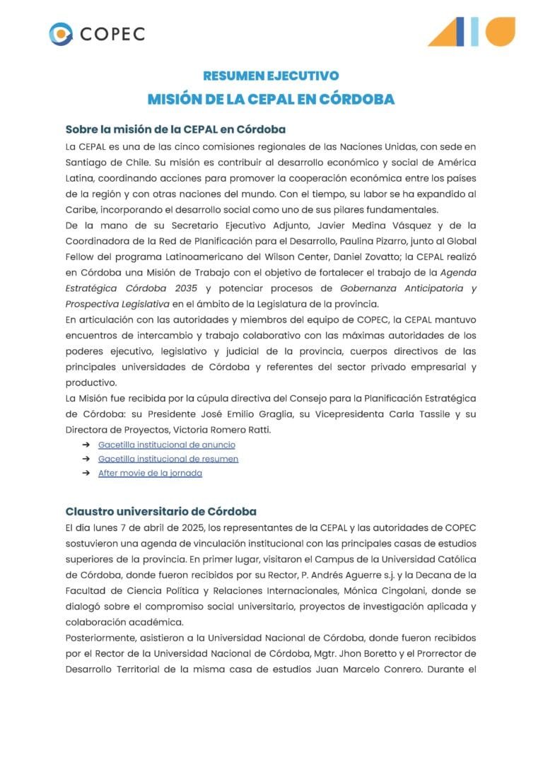 Misión de la CEPAL en Córdoba – Resumen ejecutivo