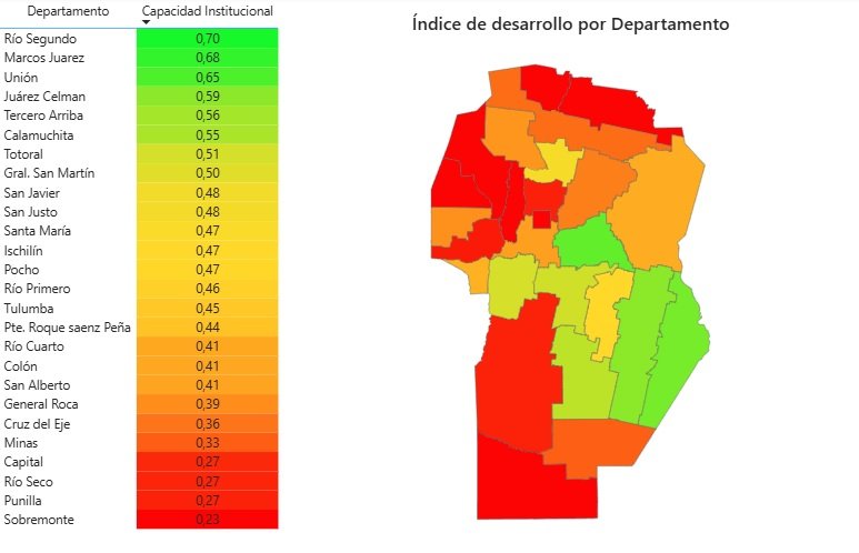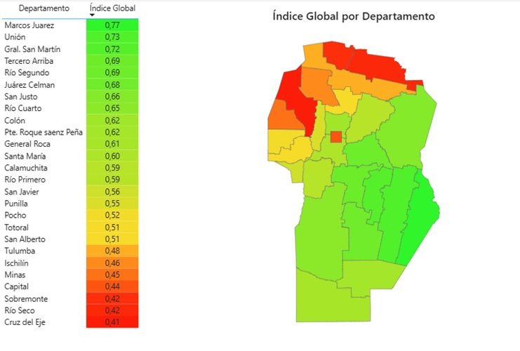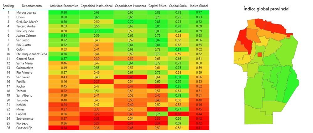 En el marco de la presentación del Programa de Agendas Regionales, el Consejo para la Planificación Estratégica de Córdoba (COPEC) presentó el Índice Sintético de Desarrollo Departamental, una herramienta orientada a analizar de manera integral el nivel de desarrollo de los 26 departamentos de la provincia de Córdoba.